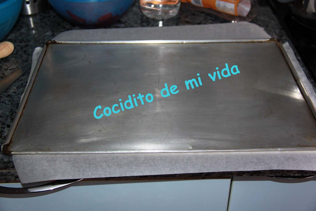Después de los 15 minutos de horneado, sacar las bandejas del horno. Retirar la bandeja superior y el papel de horno superior.